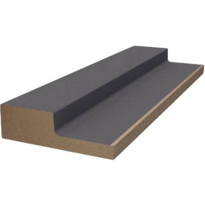 Финишная рейка WellMaker ПНл-37 Графит длиной 2800 мм и шириной 64 мм — левая часть декоративного оформления реечных панелей в жилых и гостевых комнатах в Минске. Изготовлена из МДФ с гладкой матовой поверхностью серого цвета, без рисунка.