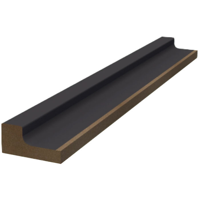 Финишная рейка WellMaker ПНл-38 Графит длиной 2800 мм и шириной 25 мм — левая часть декоративного оформления реечных панелей в жилых и гостевых комнатах в Минске. Изготовлена из МДФ с гладкой матовой поверхностью коричневого цвета.