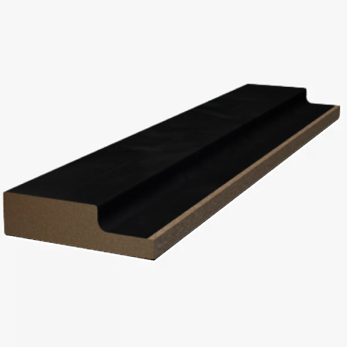 Финишная рейка WellMaker ПНл-43 Блэк длиной 2800 мм и шириной 44 мм — левая часть декоративного оформления реечных панелей в жилых и гостевых комнатах в Минске. Изготовлена из МДФ с гладкой матовой поверхностью черного цвета.