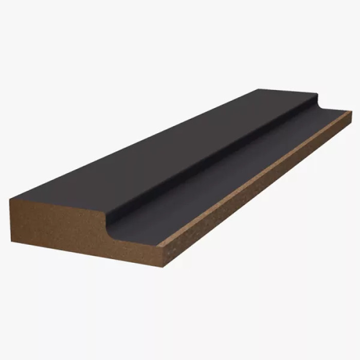 Финишная рейка WellMaker ПНл-43 Графит длиной 2800 мм и шириной 44 мм — левая часть декоративного оформления реечных панелей в жилых и гостевых комнатах в Минске. Изготовлена из МДФ с гладкой матовой поверхностью серого цвета.