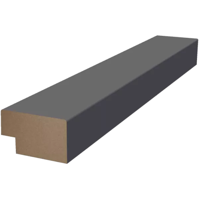 Финишная рейка WellMaker ПНп-37 Графит длиной 2800 мм и шириной 32 мм — правая часть декоративного оформления реечных панелей в жилых и гостевых комнатах в Минске. Изготовлена из МДФ с матовой гладкой поверхностью серого цвета.