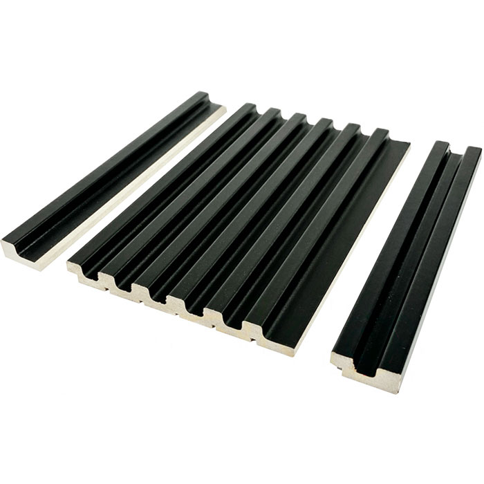 Финишная рейка WellMaker ПНп-38 Блэк длиной 2800 мм и шириной 29 мм — правая часть декоративного оформления реечных панелей в жилых и гостевых комнатах в Минске. Изготовлена из МДФ с матовой гладкой поверхностью черного цвета.